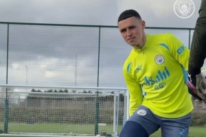 曼城球员们正在备战赛季关键阶段的比赛,俱乐部官方社媒晒出队内前锋福登与门将埃德森之间的攻防对决视频。